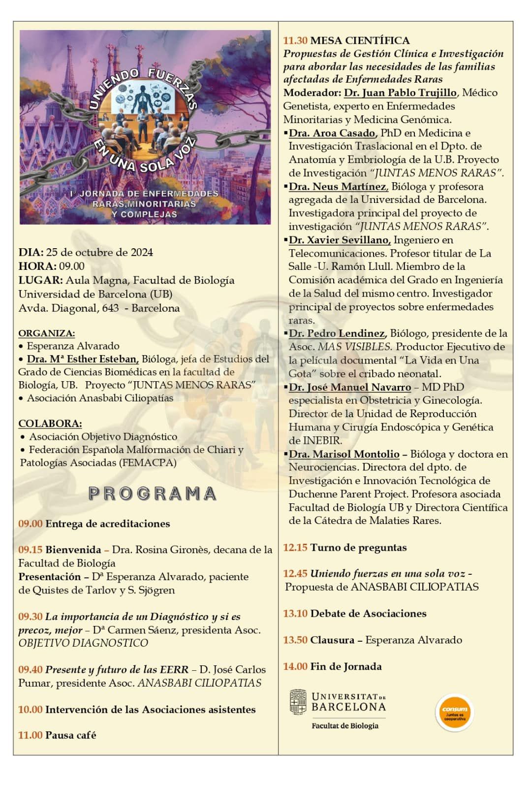 I Jornada de Enfermedades Raras, Minoritarias y Complejas de la Universidad de Barcelona.