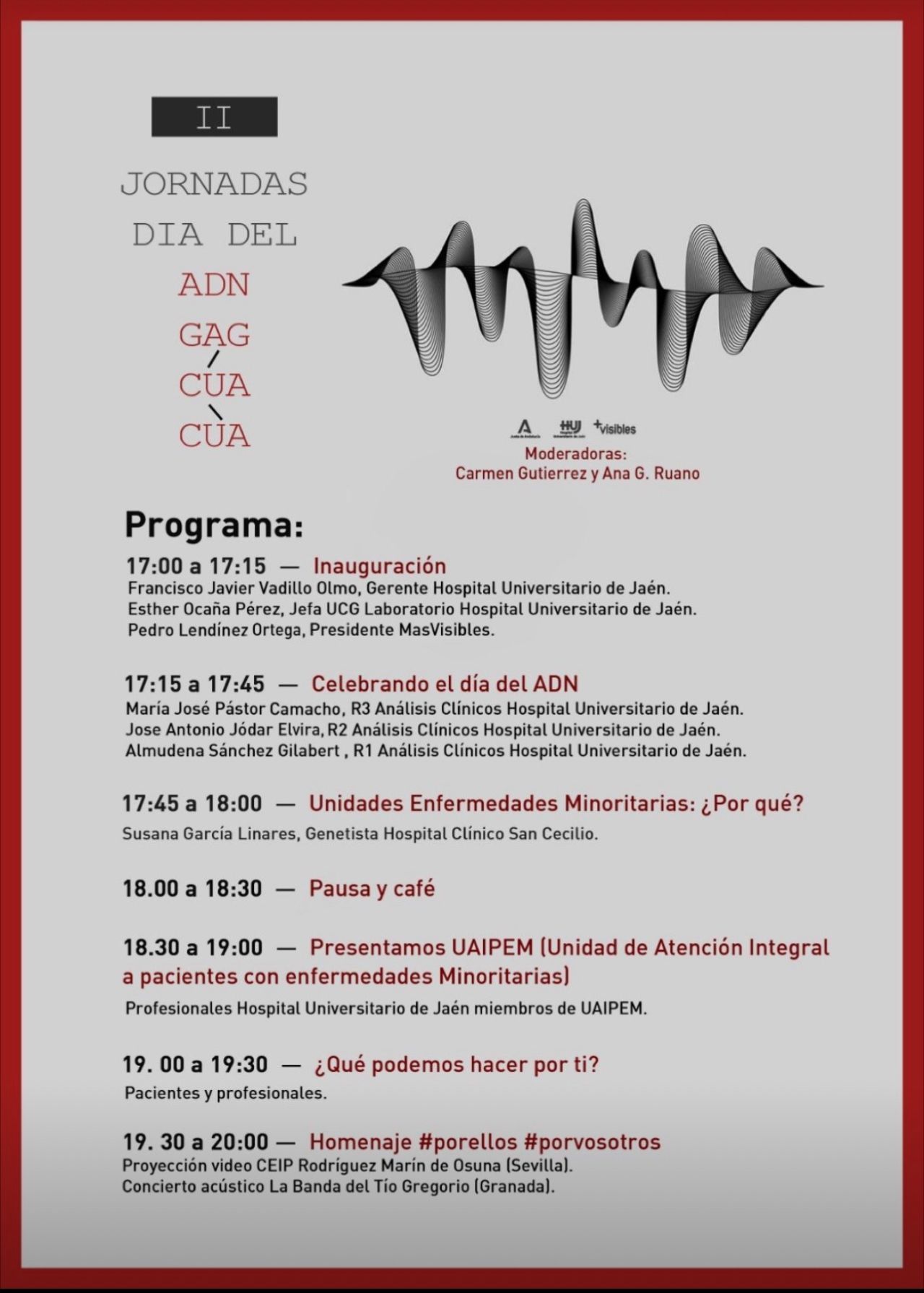 Con motivo del día internacional del ADN, el Hospital Universitario de Jaén y la Asociación de Enfermedades Raras: MásVisibles, organizan la I Jornada de genética Médica.