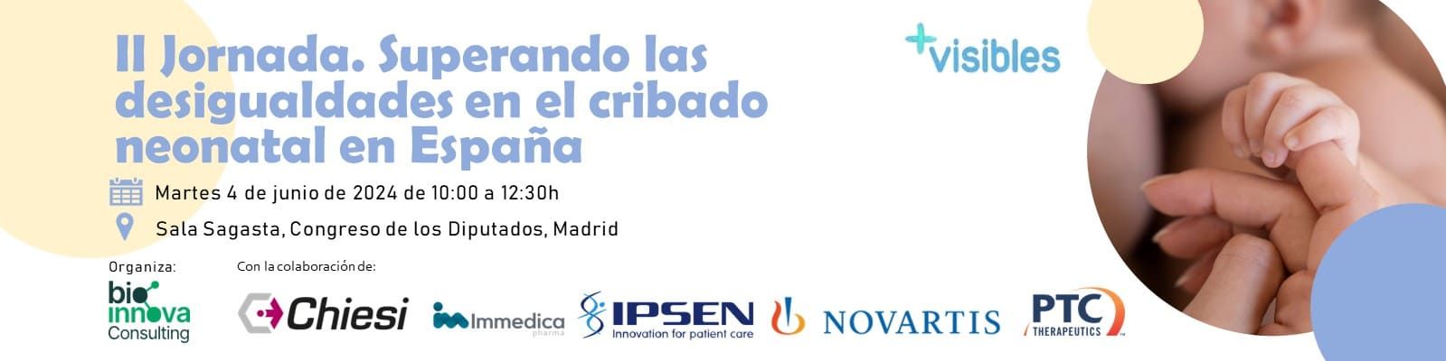 El encuentro "Superando las desigualdades en el cribado neonatal en España" se celebrará el próximo martes 4, de Junio de 2024 , iniciativa impulsada por BioInnova Consulting y MasVisibles.